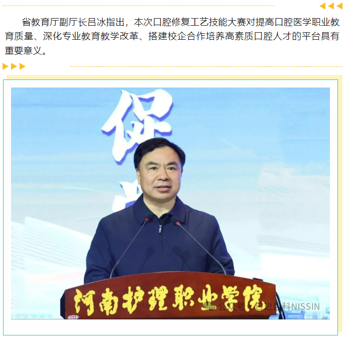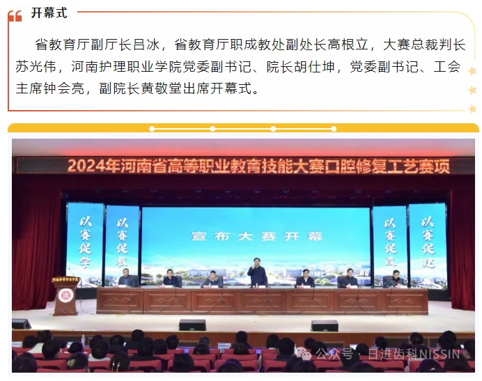 由河南省教育廳主辦,河南護理職業學院承辦的“2024年河南省高等職業教育技能大賽口腔修復工藝賽項”于2024年12月28日在河南安陽召開。日進齒科材料(昆山)有限公司為口腔修復工藝賽項提供全程的設備技術保障。