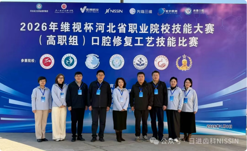 1月8日,2026年河北省職業院校技能大賽(高職組)口腔修復工藝技能比賽在唐山職業技術學院圓滿落幕。本次大賽由河北省教育廳、河北省衛生職業教育集團聯合主辦,唐山職業技術學院承辦,維視醫療信息科技 (山東) 有限公司、日進齒科材料(昆山)有限公司、先臨三維科技股份有限公司協辦,來自全省7所院校的11支隊伍參加比賽。